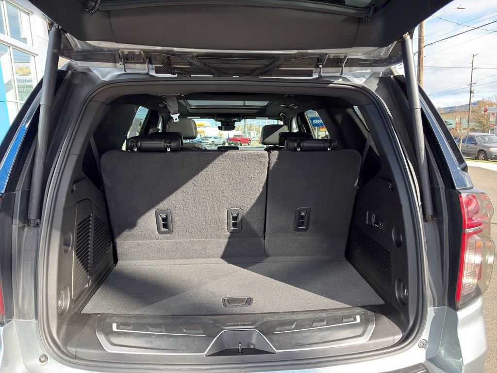 Max Trailering Package: Extra Capacity Cooling System. Advanced Trailering Package: Trailer Side Blind Zone Alert; Smart Trailer Integration Indicator; Integrated Trailer Brake Controller; Hitch Guidance with Hitch View. High Country Deluxe: Dual-Pane Power Panoramic Sunroof; Air Ride Adaptive Suspension; Power-Retractable Assist Steps. Illumination Package: Illuminated Front and Rear Door Sill Plates; Illuminated Mirror Chevrolet Emblem; Illuminated Liftgate Sill Plate. Preferred Equipment Group 3LZ: Bright Front and Rear Door Sill Plates; Memory Settings; Perforated Leather Seat Trim; Remote Start; 3rd Row 60/40 Power-Folding Split-Bench Seat; Safety Alert Seat; Chrome Door Handles with Body-Color Strip; Hill Descent Control; Rear Camera Mirror Washer; Inside Rearview Auo-Dimming Rear Camera Mirror; Heated Steering Wheel; LED Daytime Running Lamps; Rear Cross Traffic Alert; Wheels: 22" X 9" Sterling Silver Premium Painted; Driver and Front Outboard Passenger Airbags; Wireless Charging; Front High-Back Reclining Bucket Seats; Universal Home Remote; Color-Keyed Carpeting Floor Covering; Heated 2nd Row Outboard Seats; Hands-Free Rear Power Programmable Liftgate; Chevrolet Infotainment 3 Premium System Radio; 2-Speed Active Electronic Autotrac Transfer Case; 1st and 2nd Row Color-Keyed Carpeted Floor Mats; Enhanced Driver Information Center; Floor Console; Lane Change Alert with Side Blind Zone Alert; Dual Exhaust System; SiriusXM Radio with 360L; HD Surround Vision; Wrapped Steering Wheel; Power Tilt and Telescopic Steering Column; 15" Diagonal Multi-Color Head-Up Display; Rear Pedestrian Alert; Bose 10-Speaker Centerpoint Surround Audio System Feature; Magnetic Ride Control Suspension; Infotainment Display; Power Release 2nd Row Bucket Seats; Enhanced Automatic Emergency Braking; 275/50R22SL AS BW Tires; Outside Heated Power-Adjustable Mirrors. Power-Retractable Assist Steps. Dual-Pane Power Panoramic Sunroof. Air Ride Adaptive Suspension. Illuminated Front and Rear Door Sill Plates. Black Illuminated Front Bowtie Emblem. Illuminated Mirror Chevrolet Emblem. **Equipment listed is based on original vehicle build and subject to change. Please confirm the accuracy of the included equipment by calling the dealer prior to purchase.**